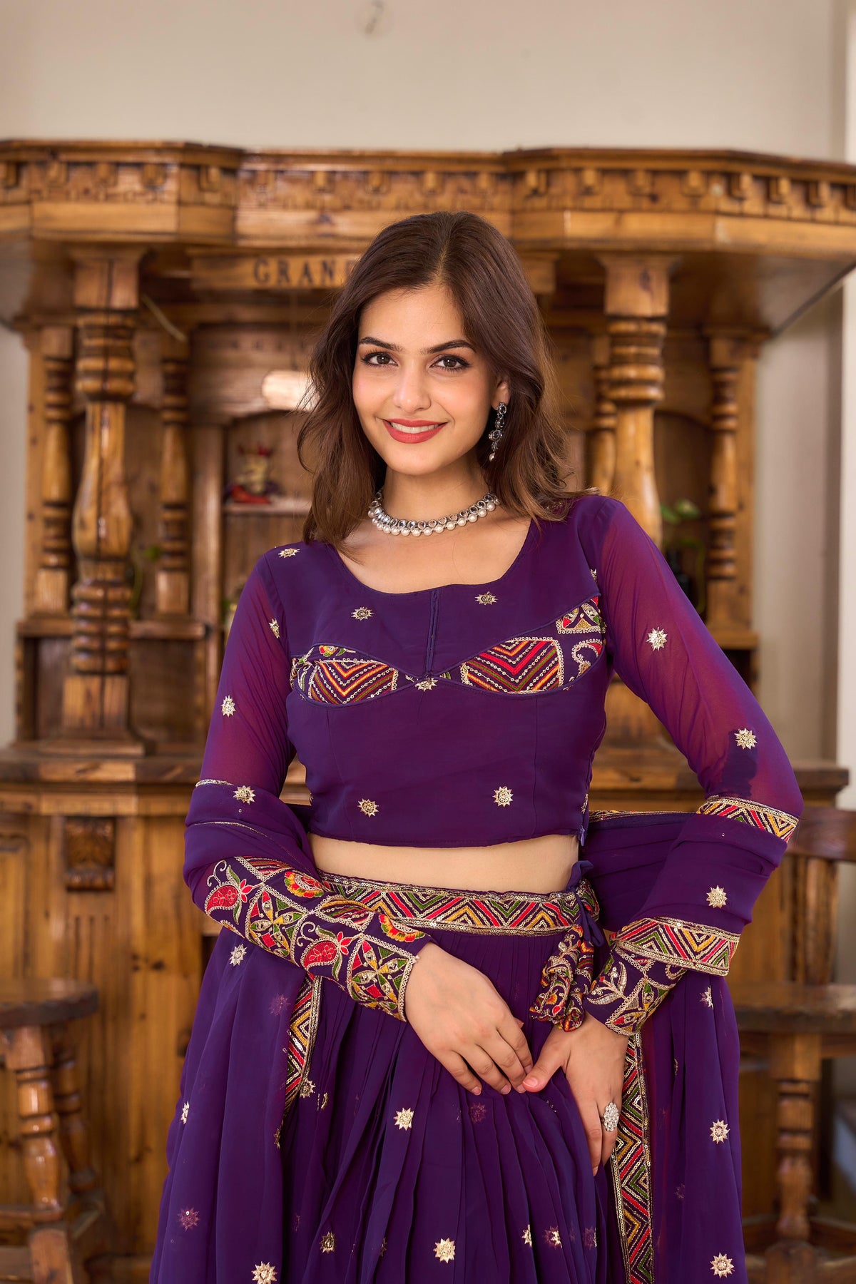 - Work: Heavy embroidery with real mirror and stone accents