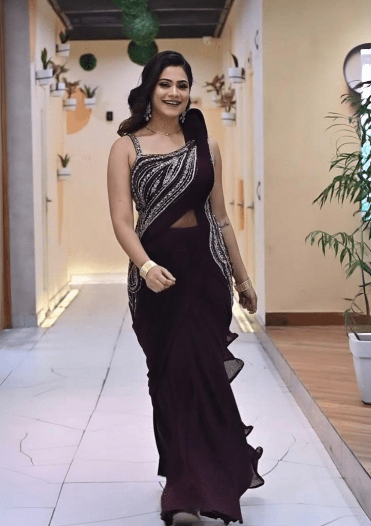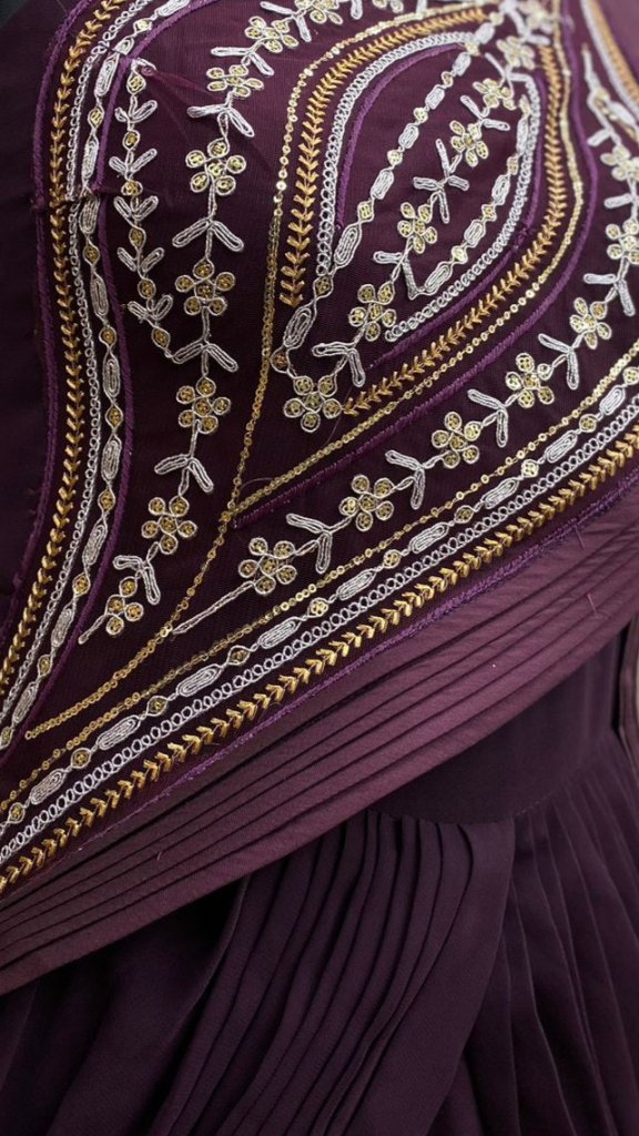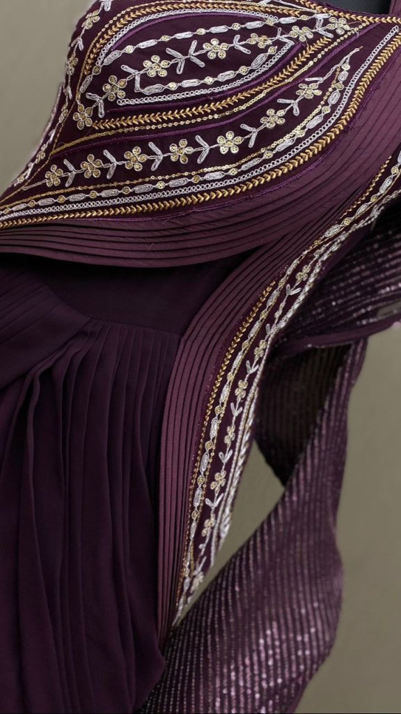 - Saree Work: Cording sequence work with sequence ruffle detailing