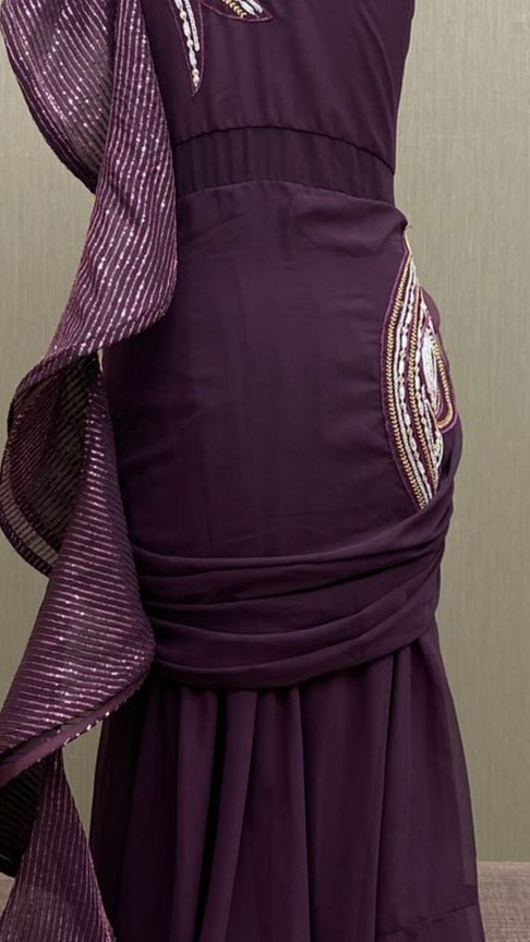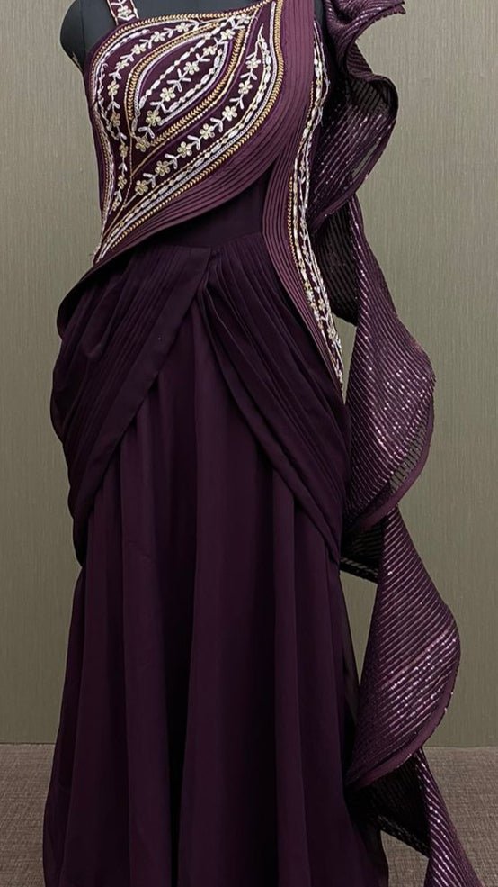Boutique Style Designer Sequence Work Ruffle Saree With Western Gown