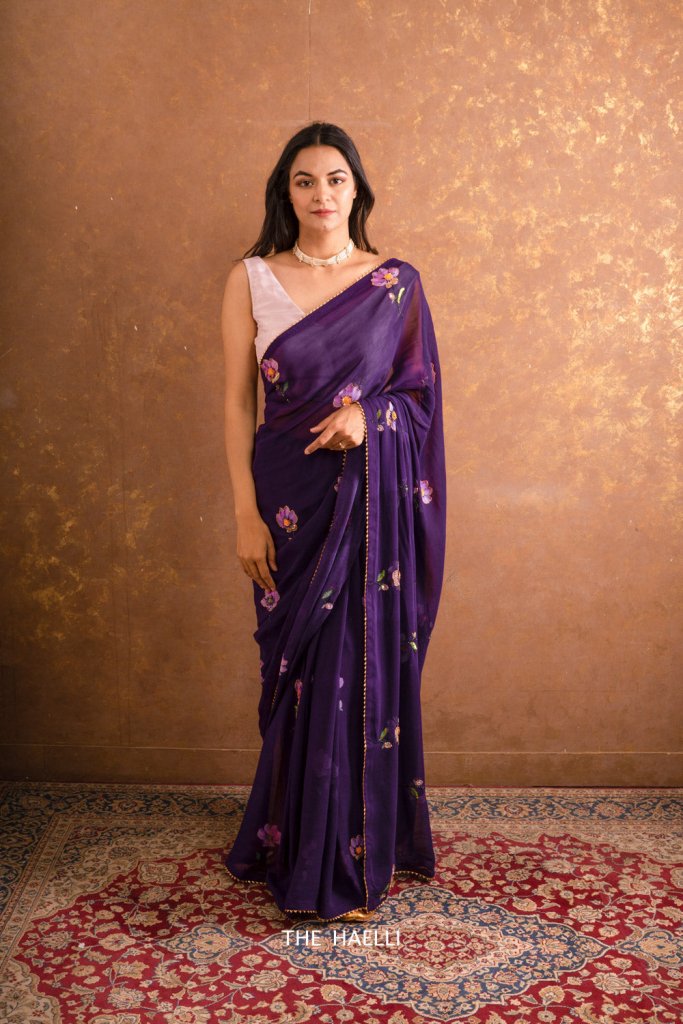 Raat Ki Raani Purple Georgette Saree - women's fashion mart