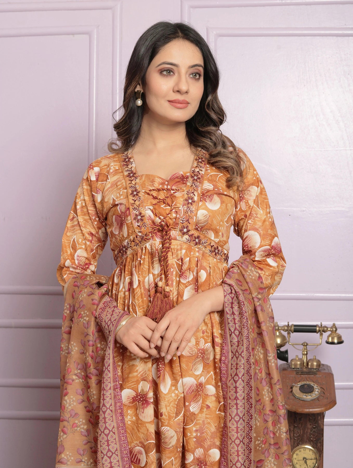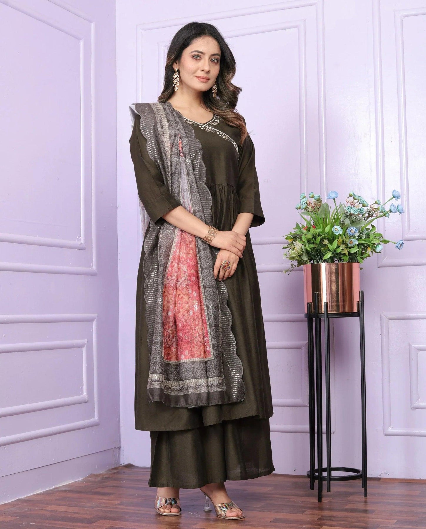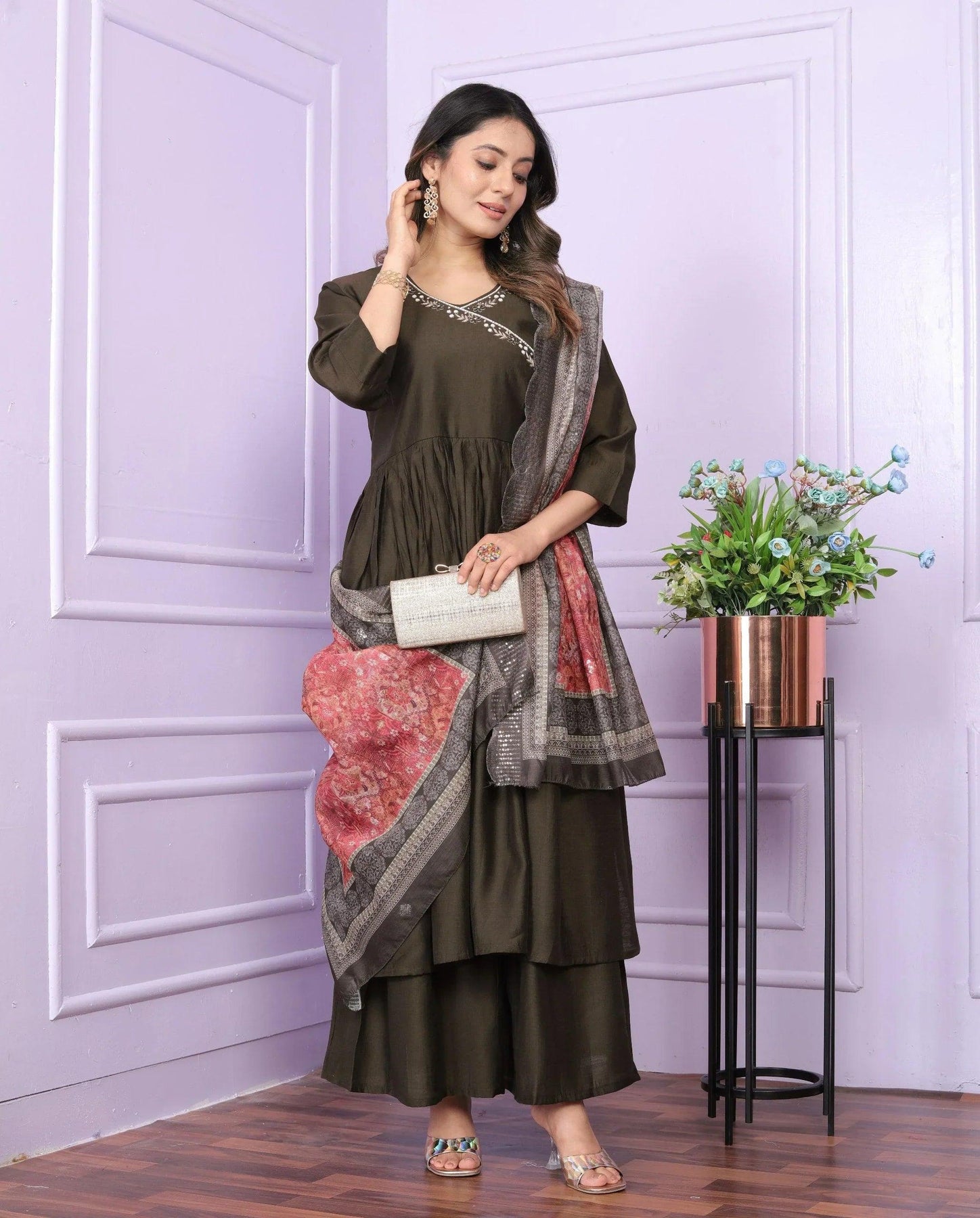 Stylish Brown Color Embroidery Work Anarkali Gown