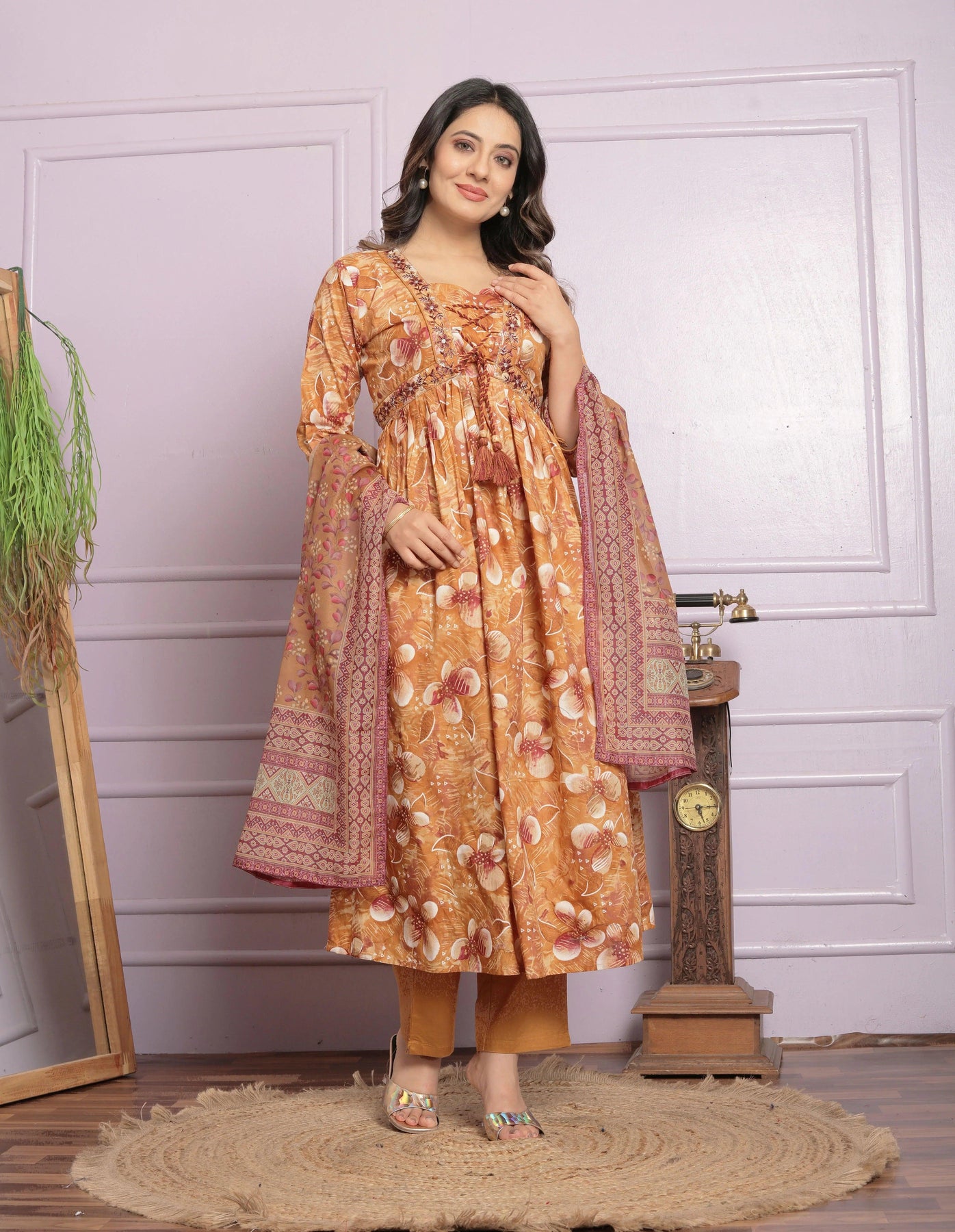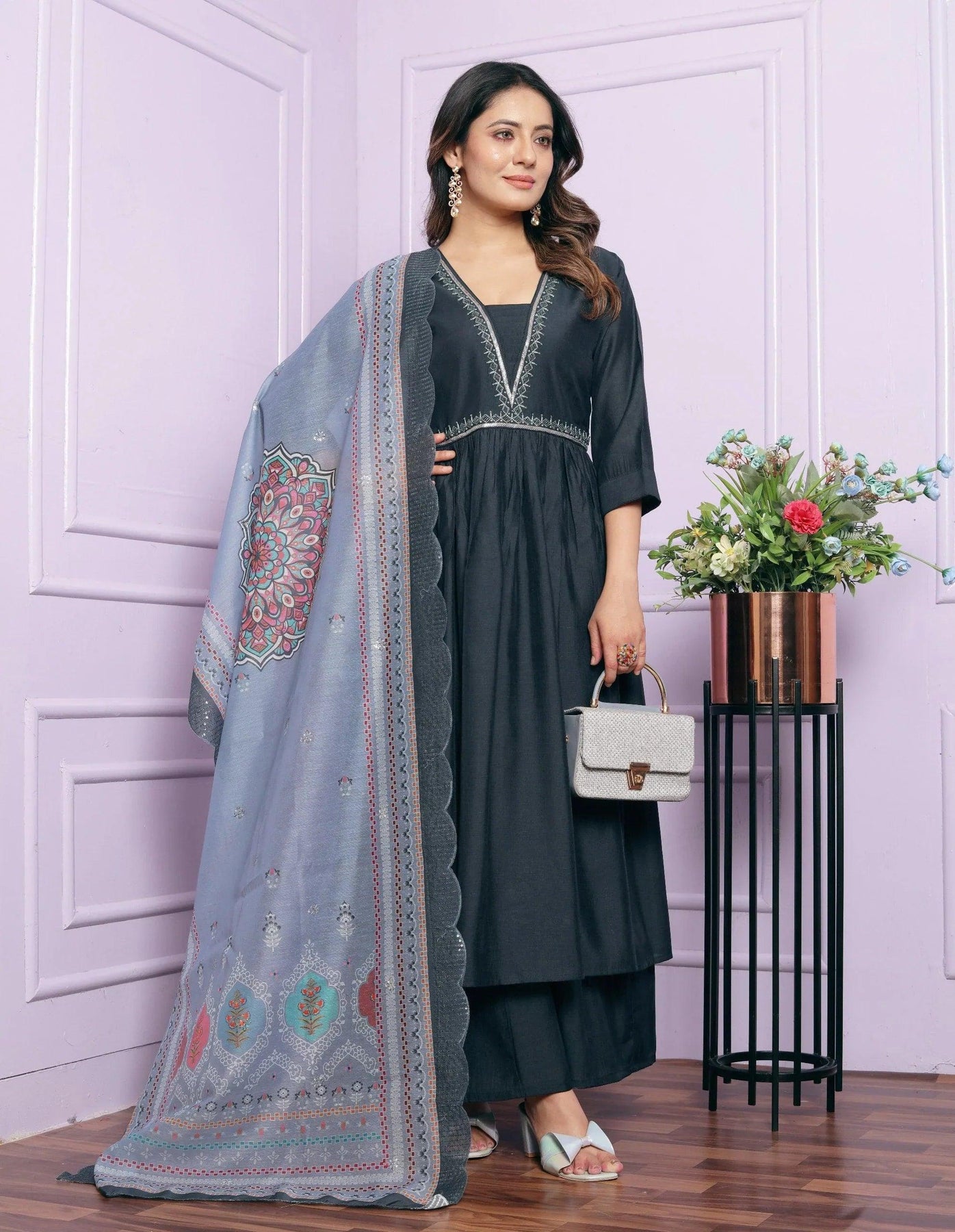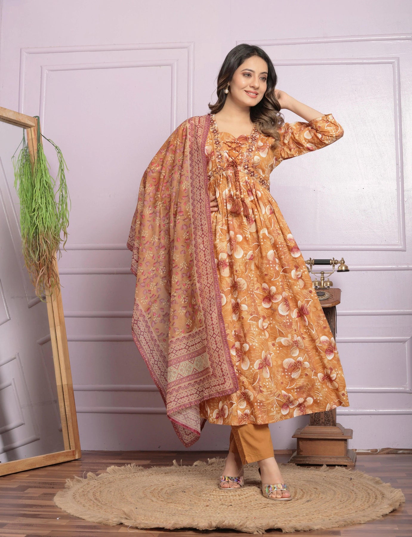 Stylish Brown Color Embroidery Work Anarkali Gown