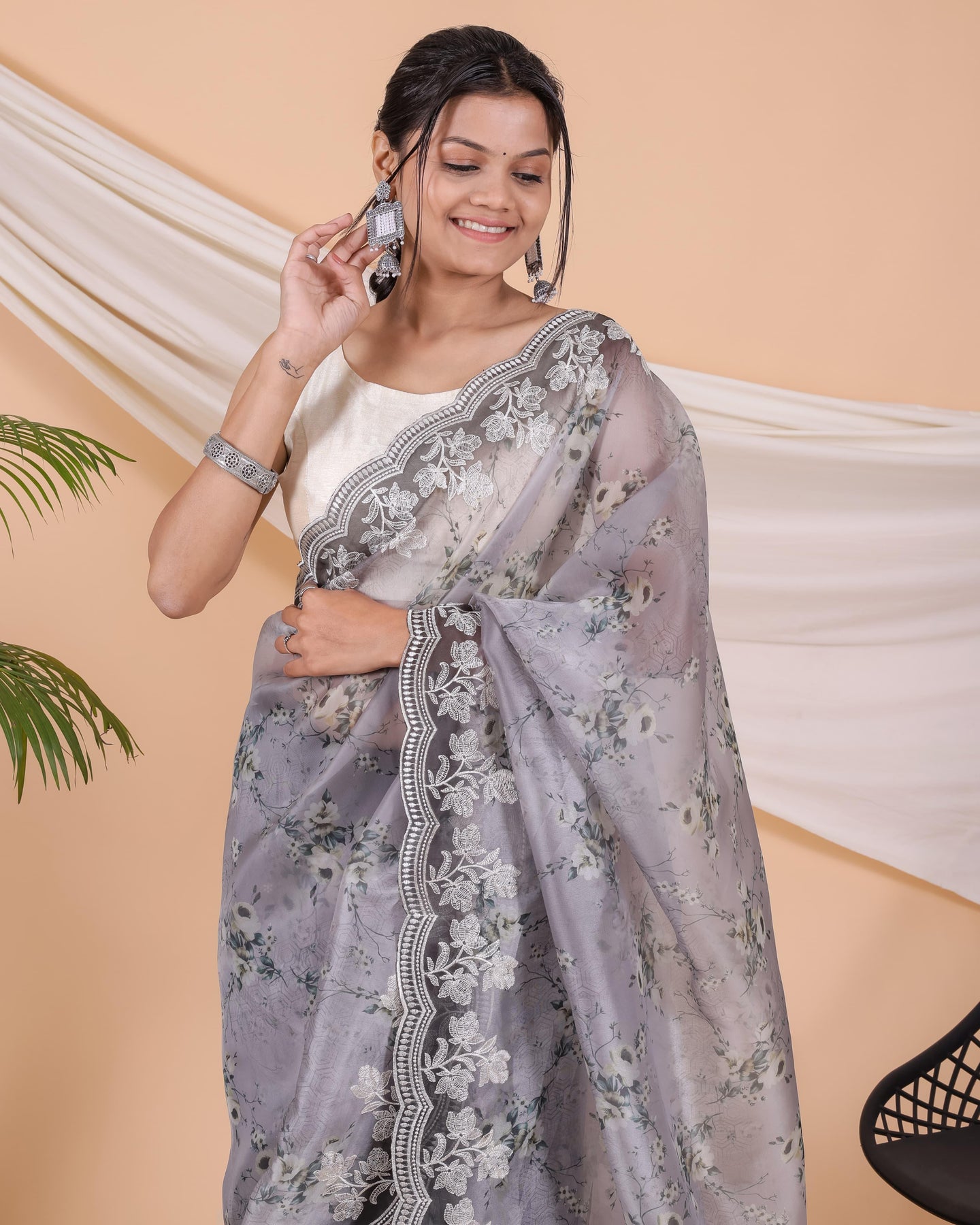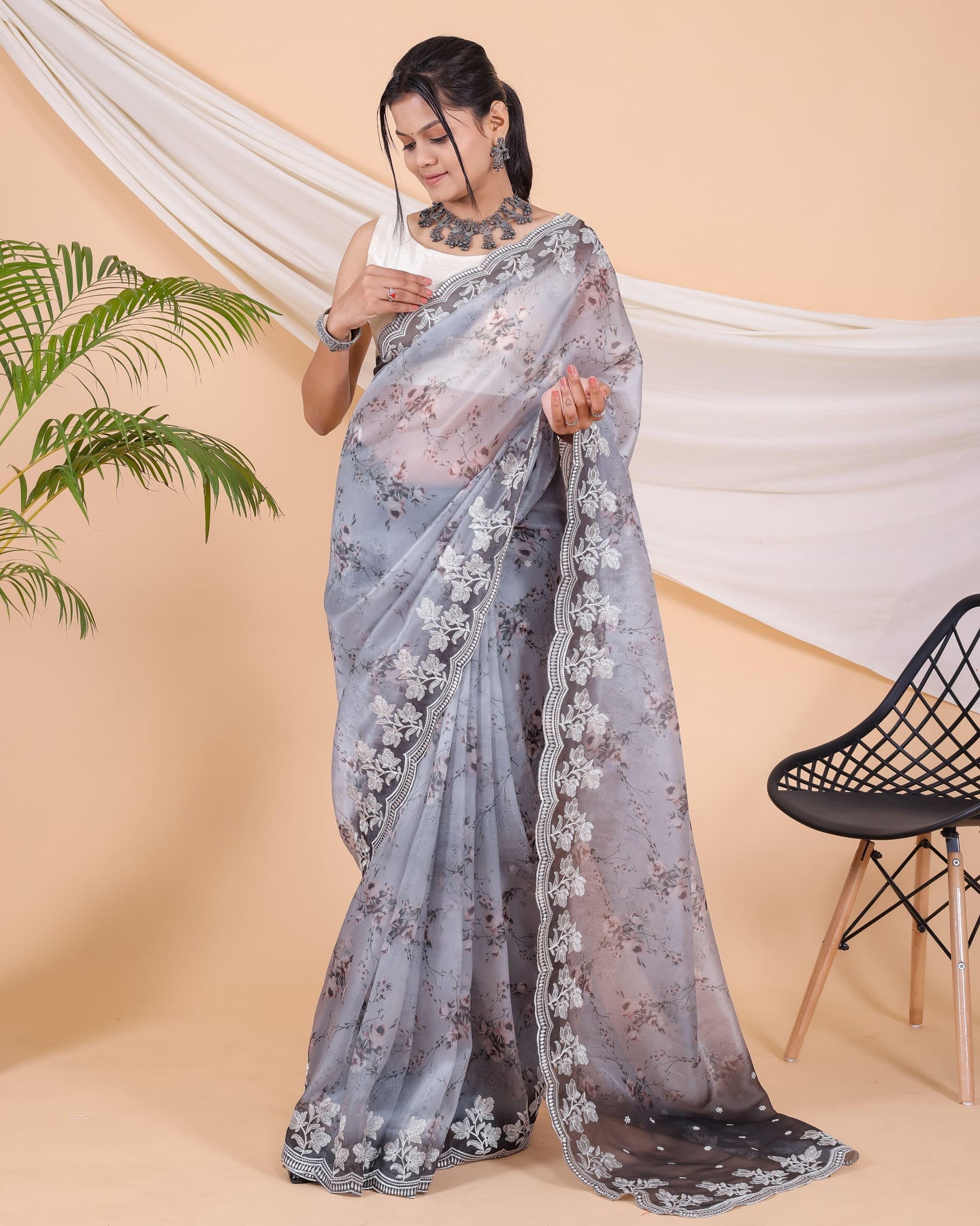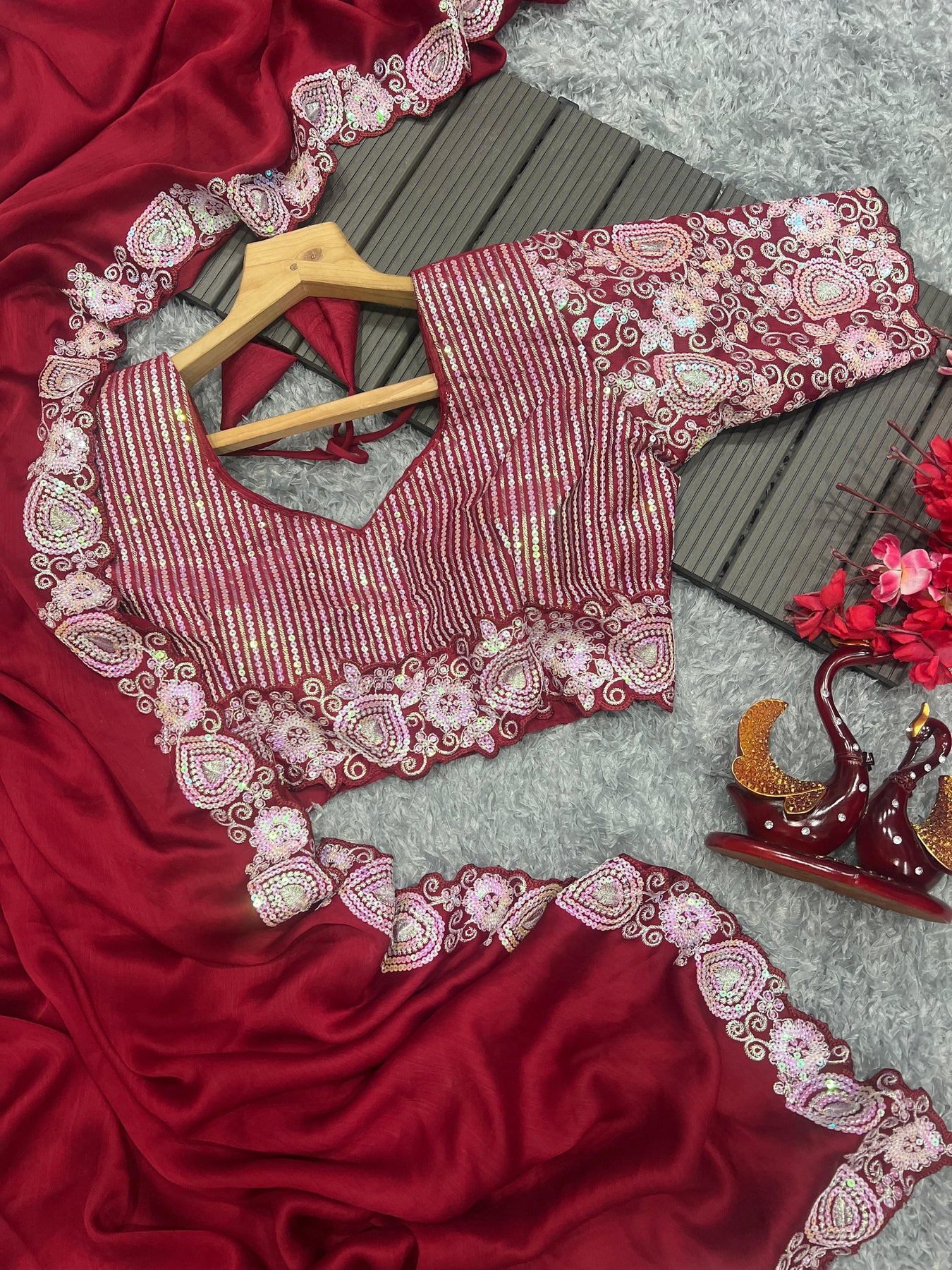Pure Cinon Silk With 5mm Sequence Embroidery Work |