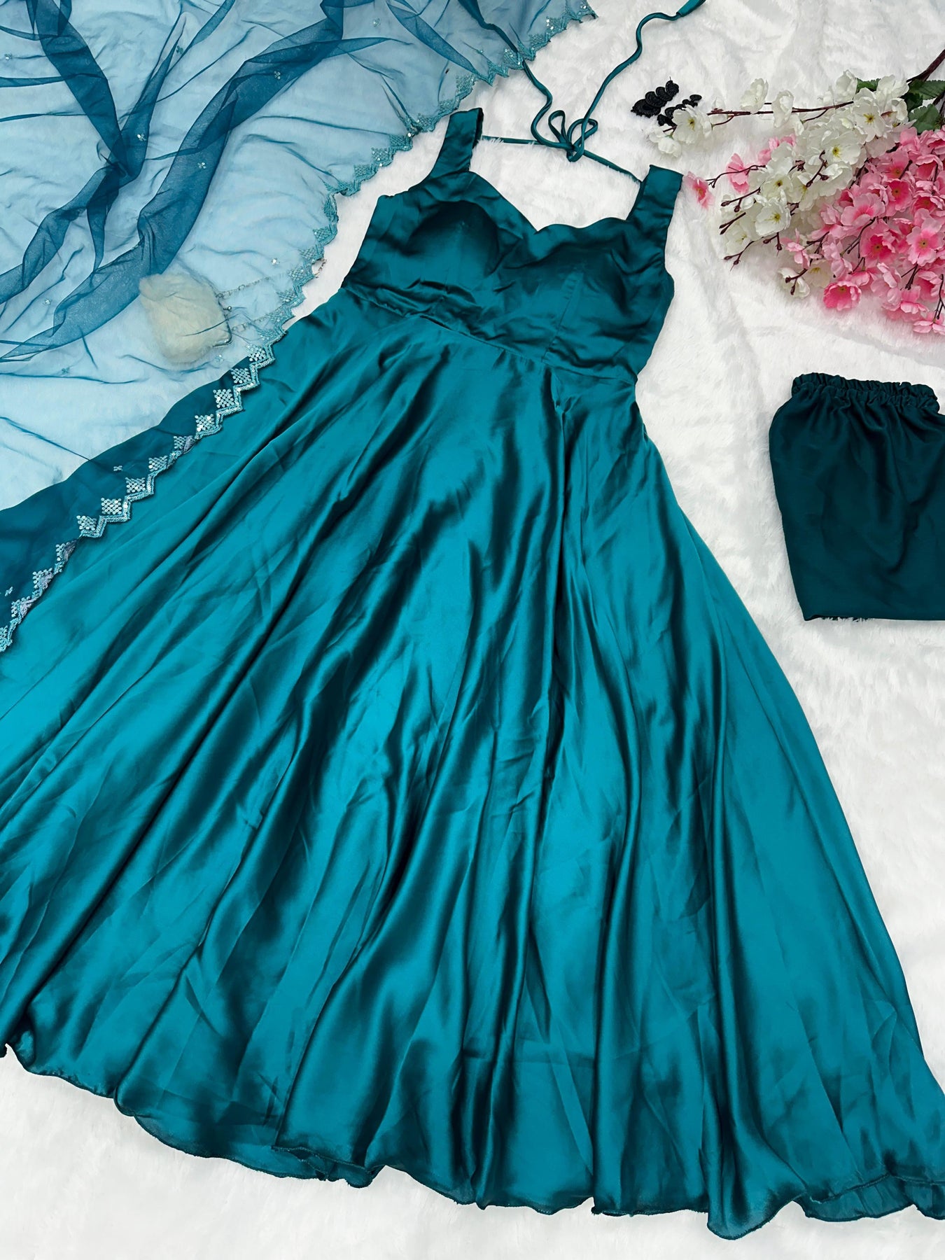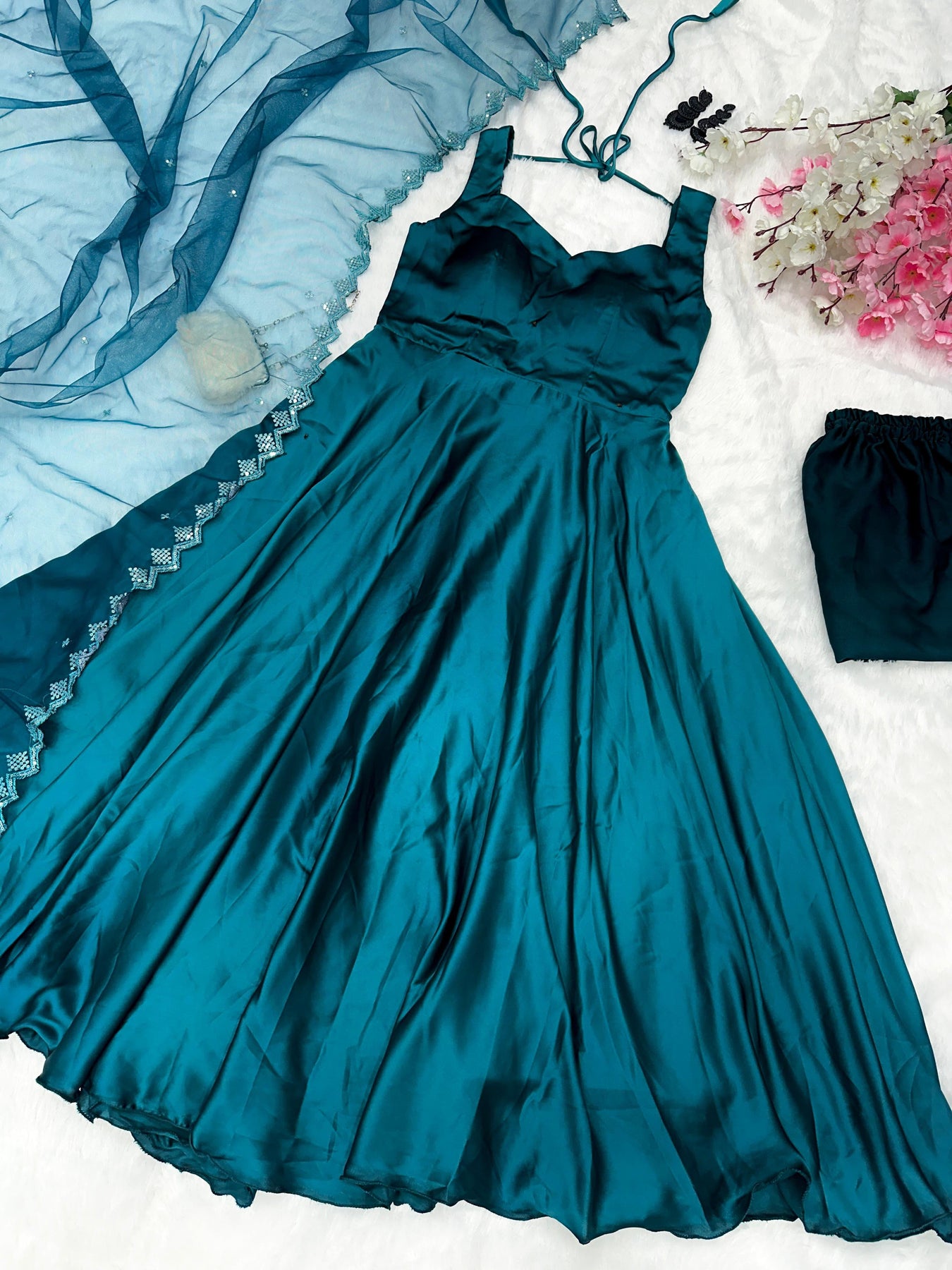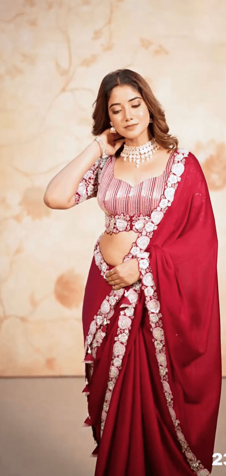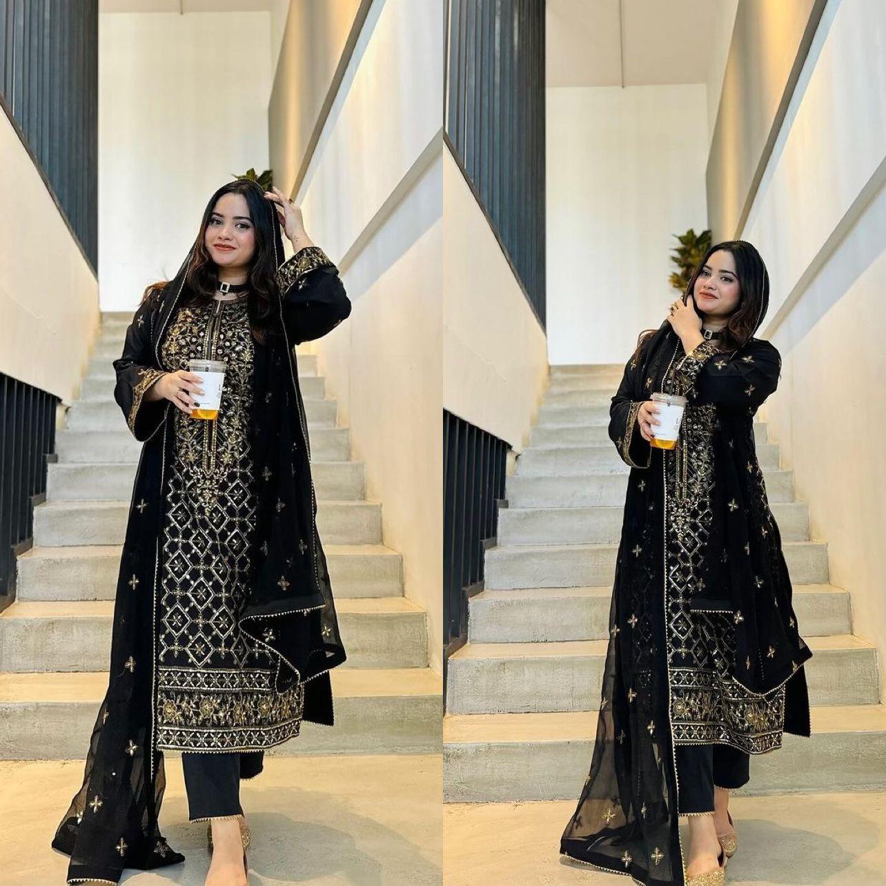| Work | 5mm Sequence Embroidery Work With Srot-sleeve With (Attached Paid) With (Kamer Belt With Fancy lace Work) |