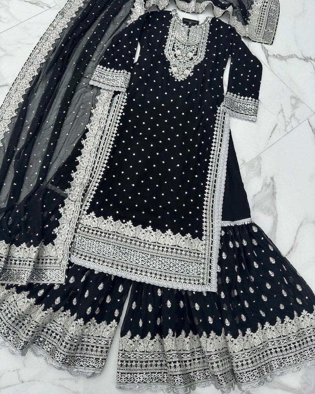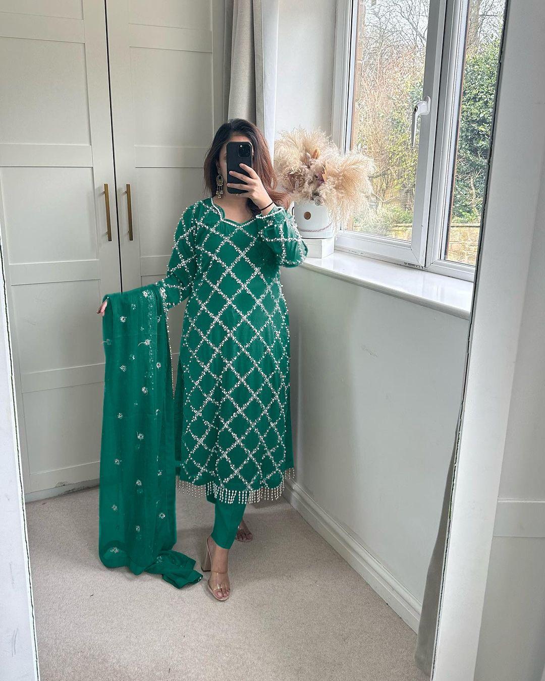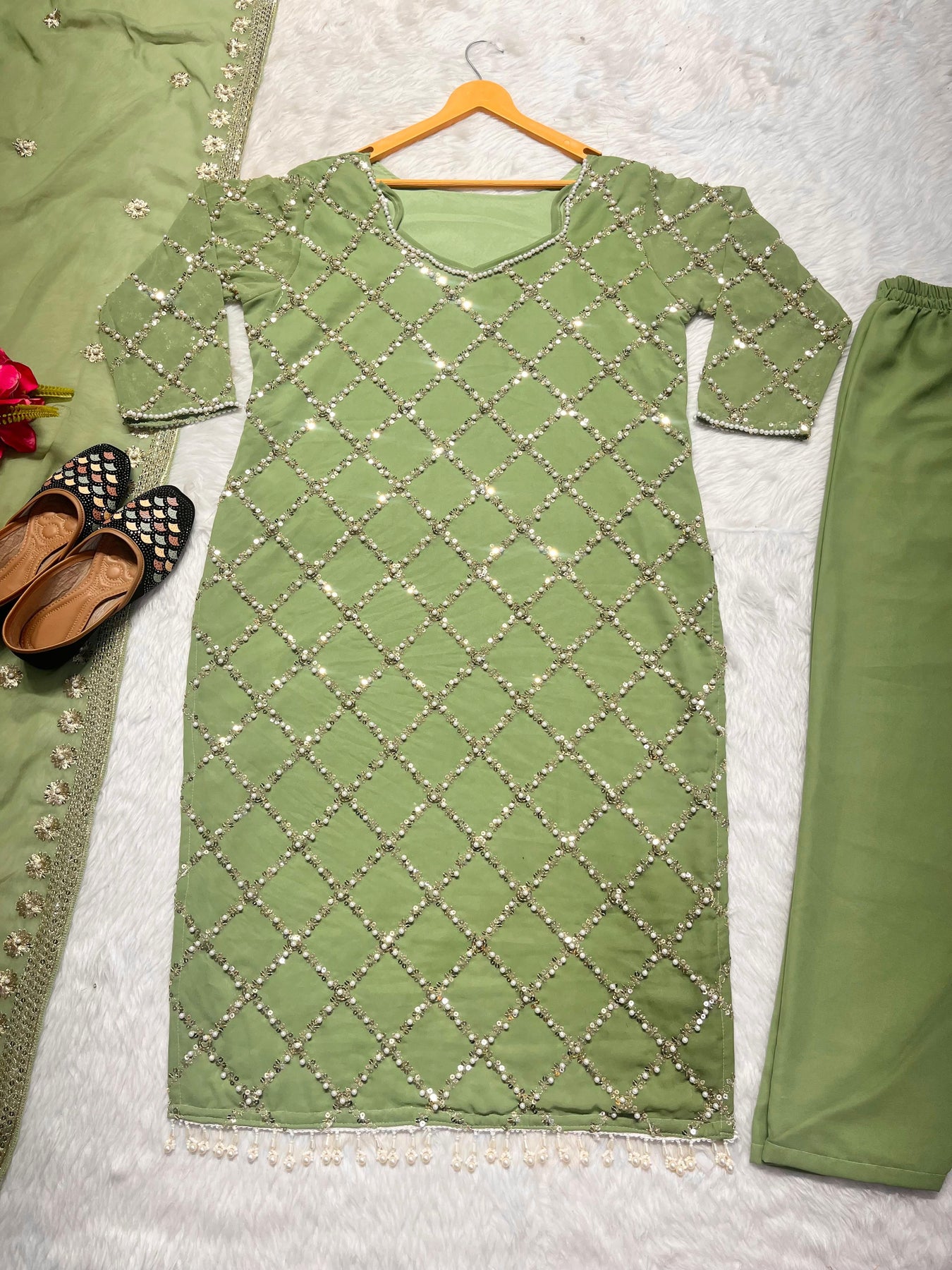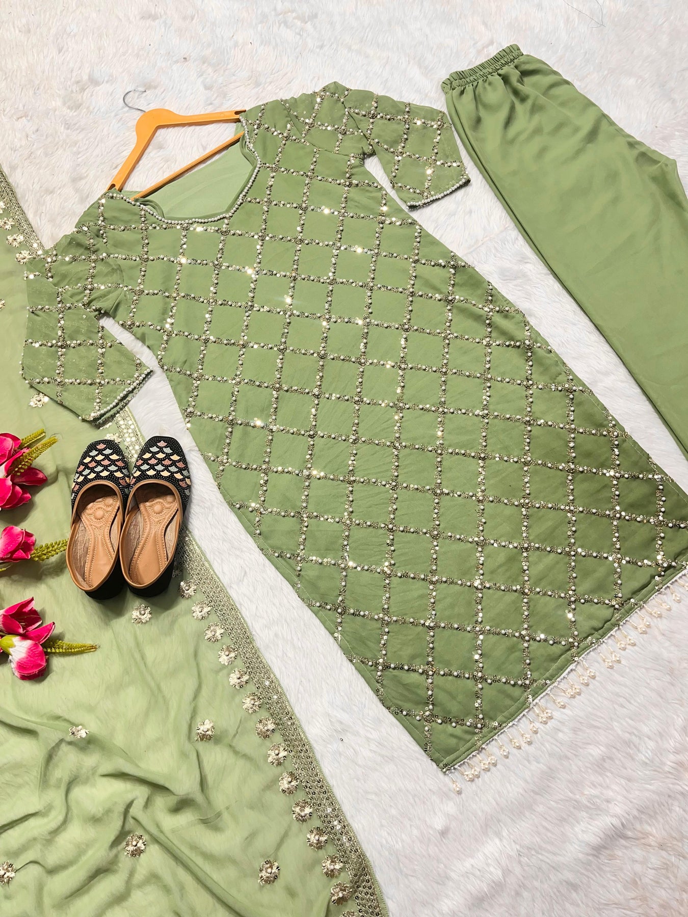 Marvelous Green Color Embroidery 5mm Sequence Work Sharara Suit