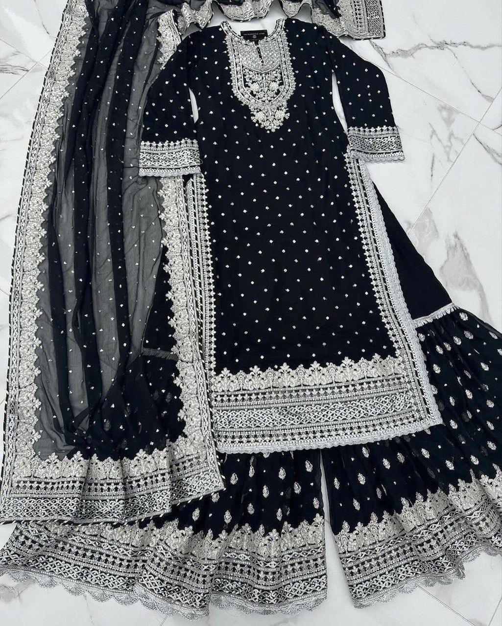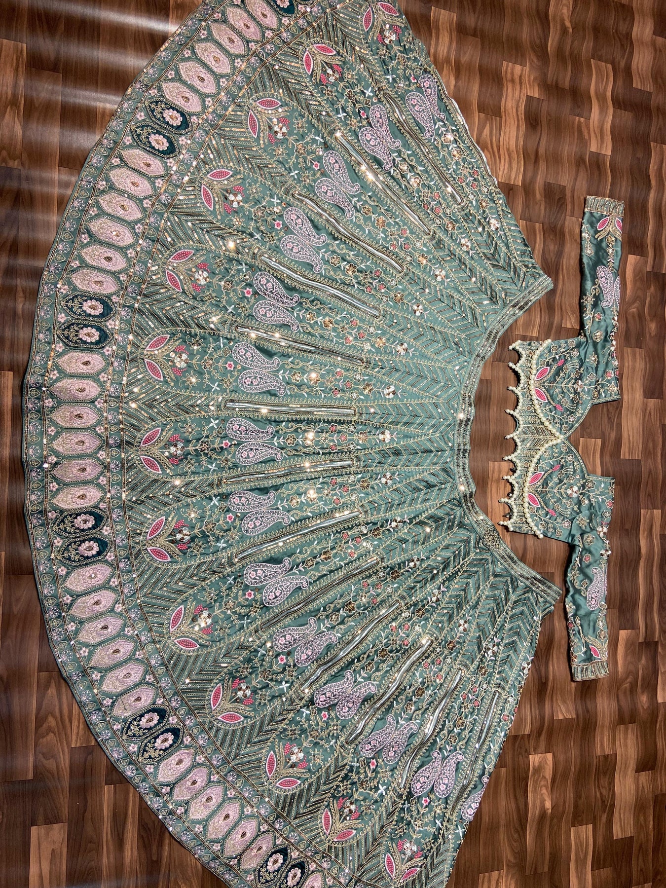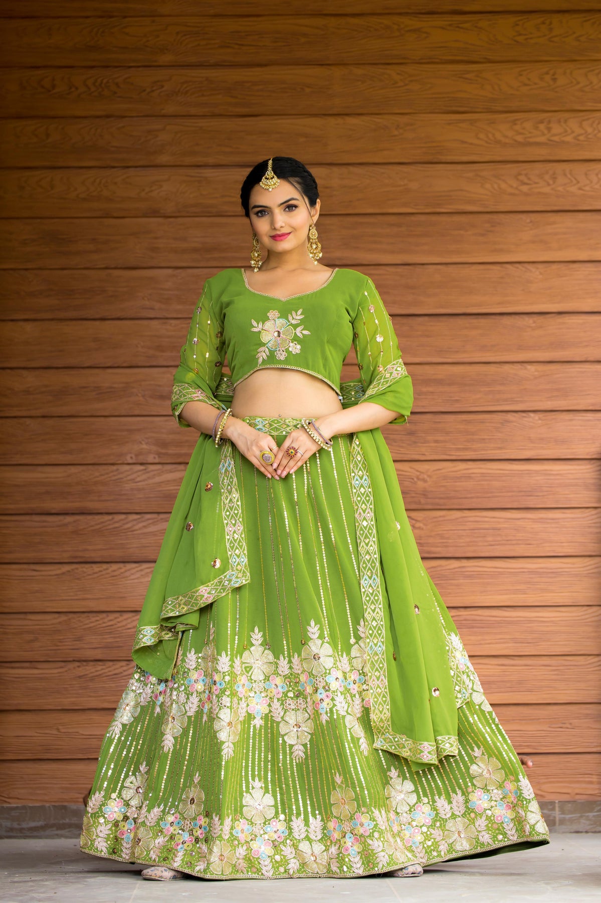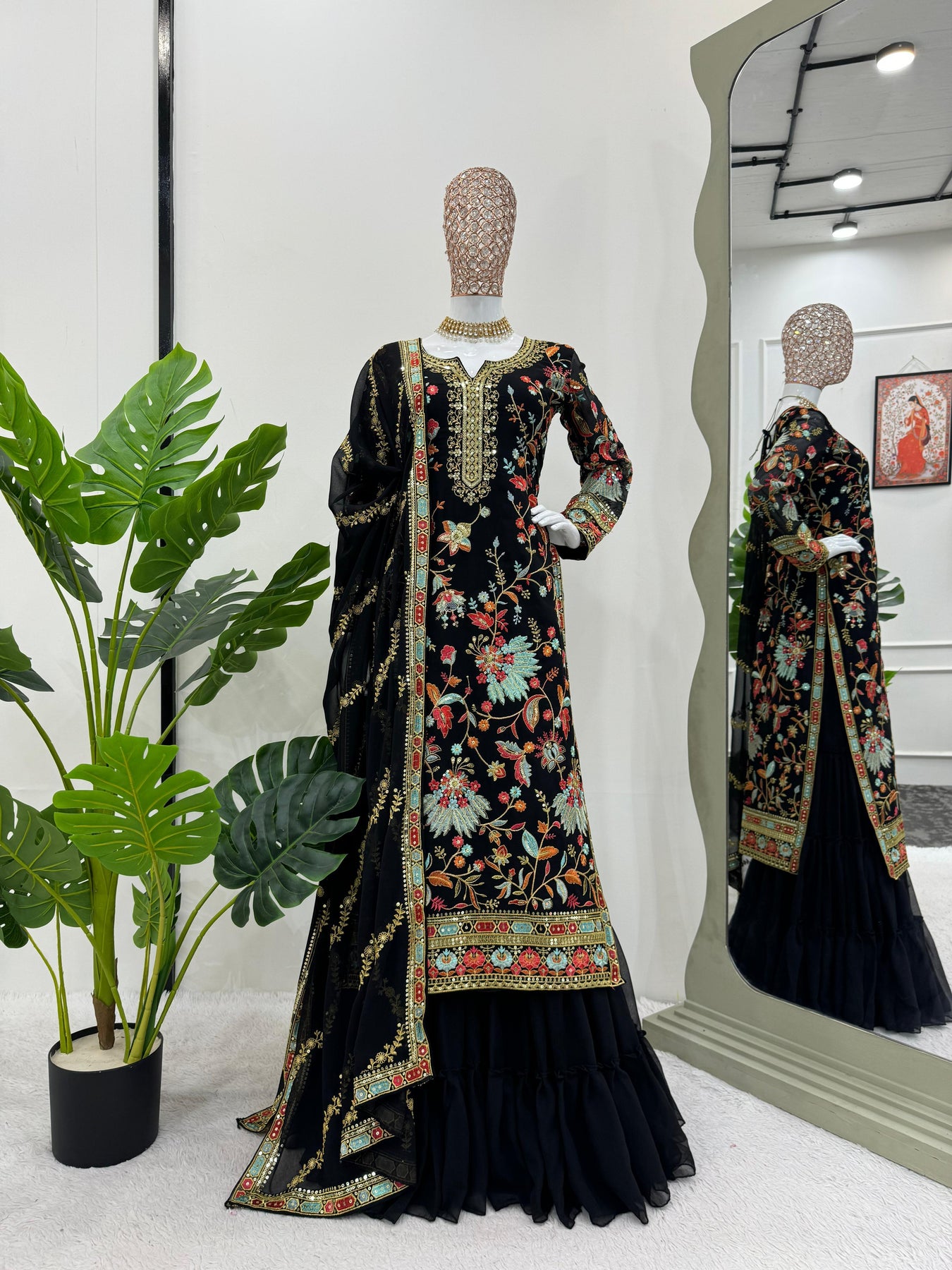 Marvelous Green Color Embroidery 5mm Sequence Work Sharara Suit