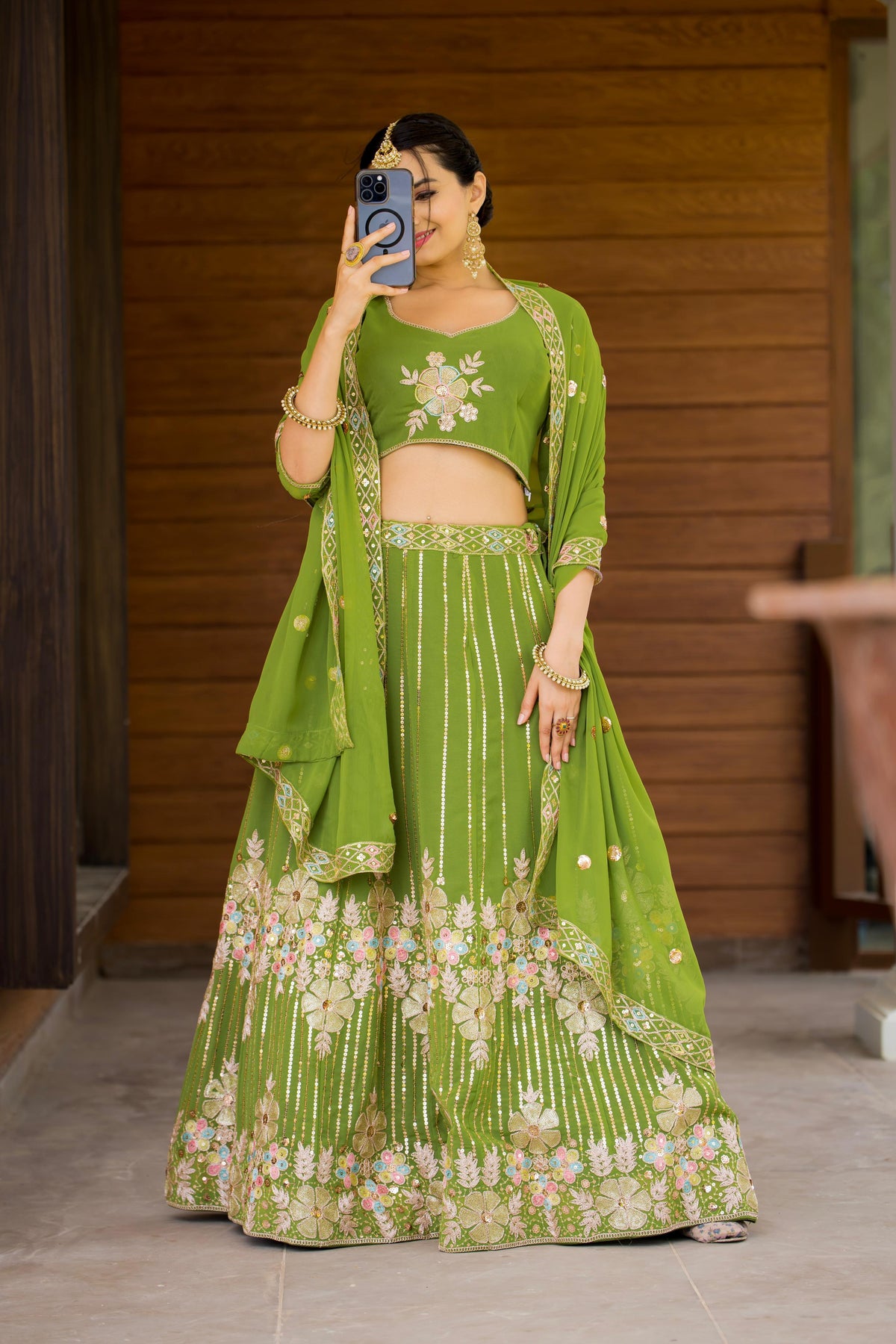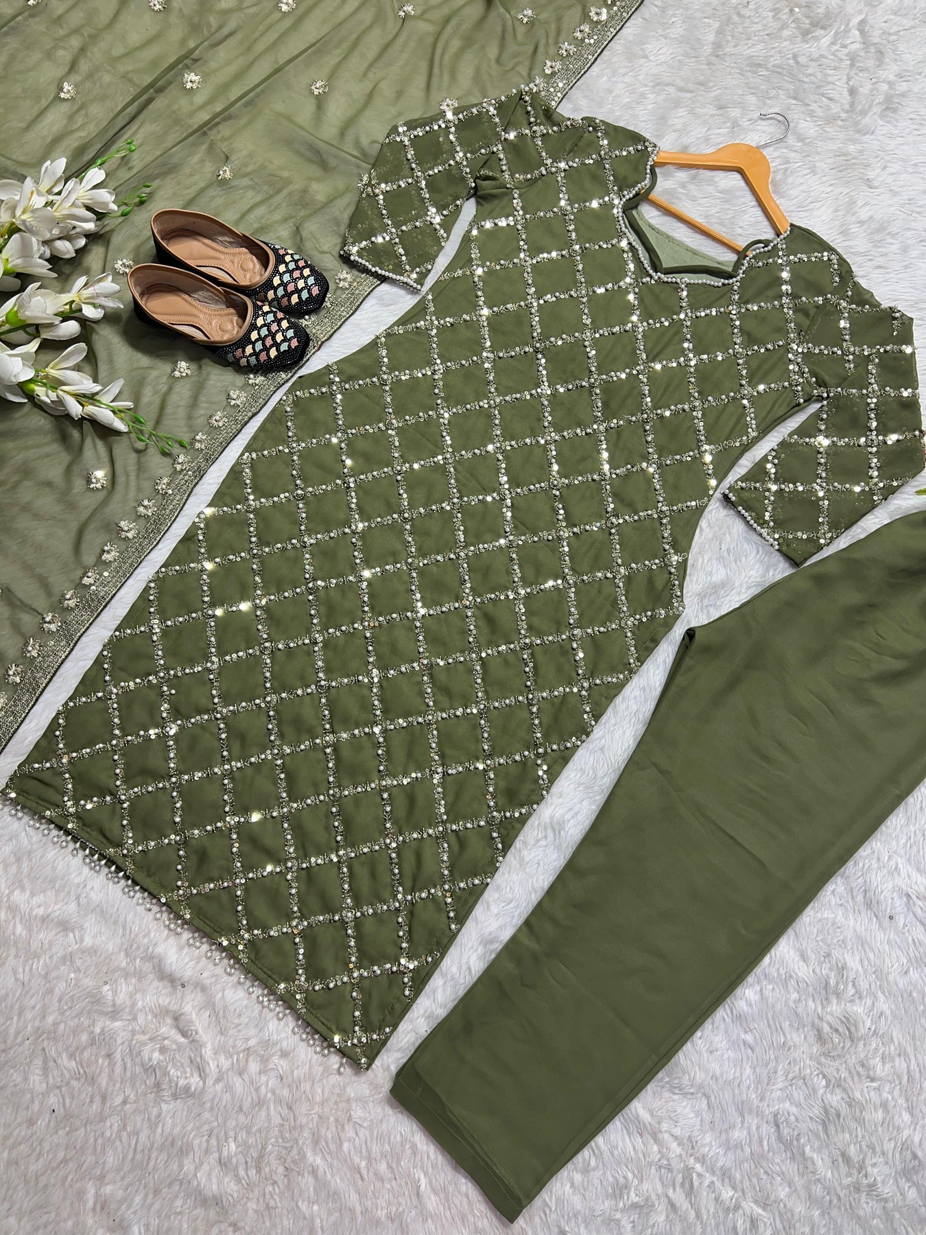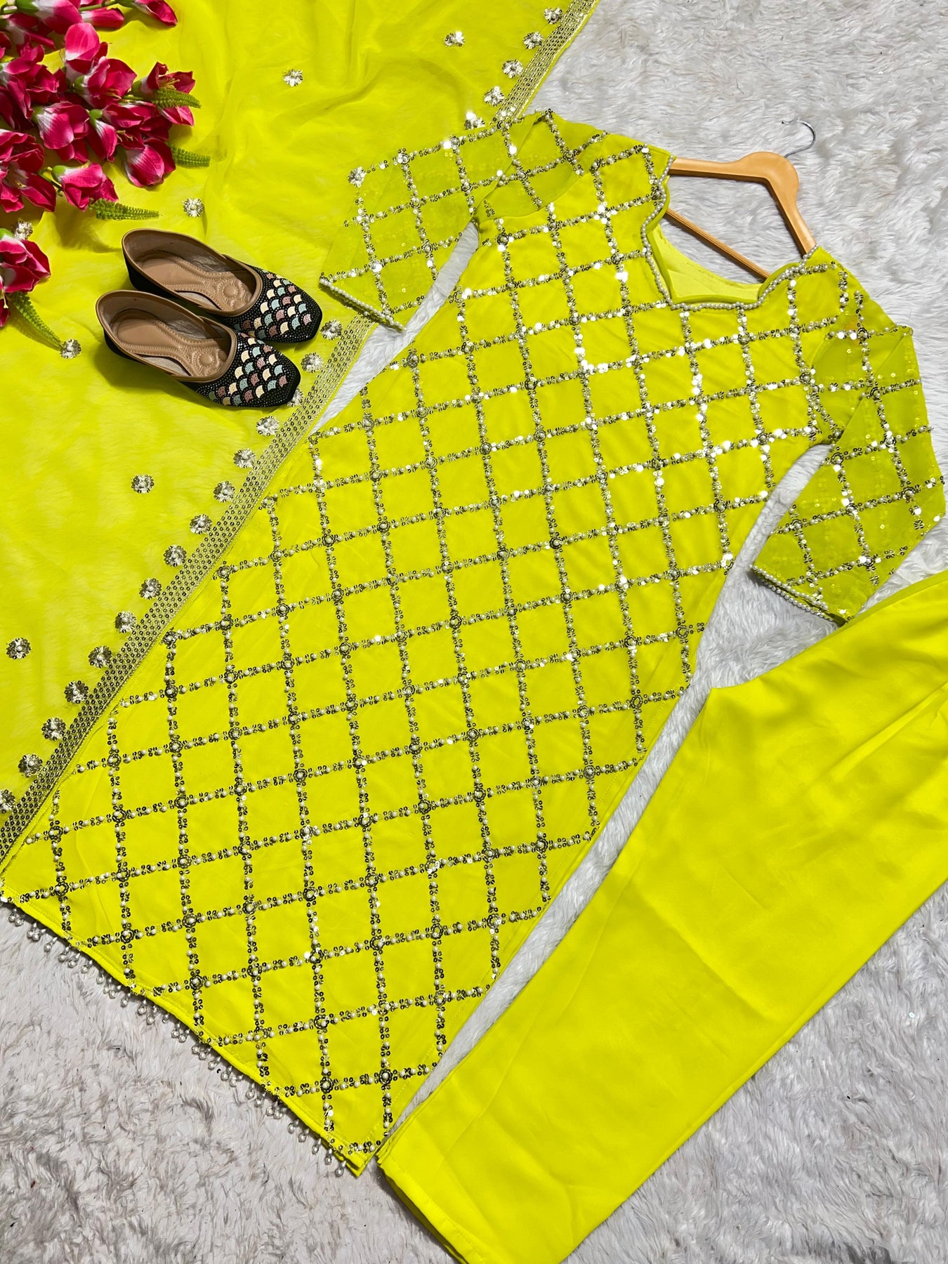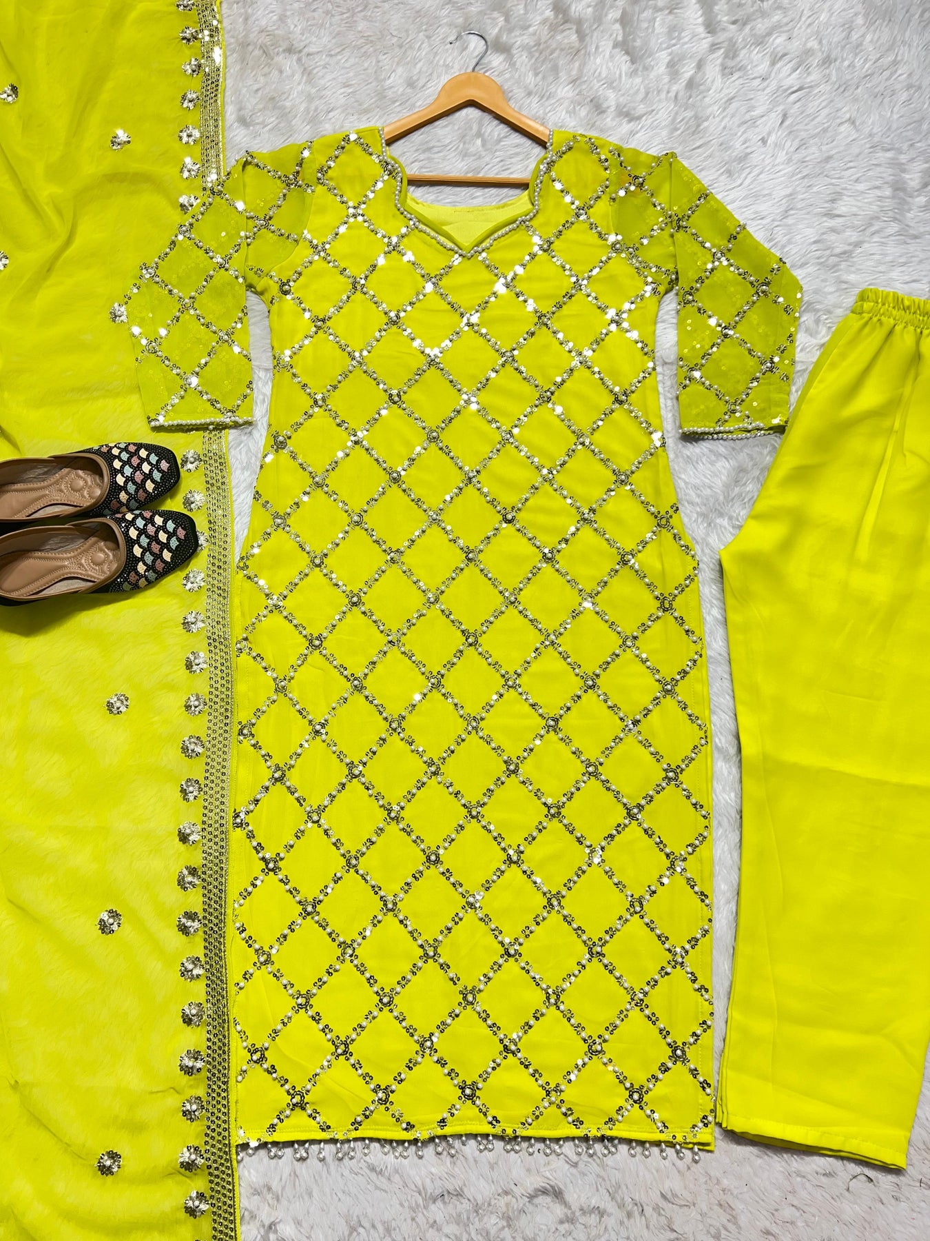 Marvelous Green Color Embroidery 5mm Sequence Work Sharara Suit