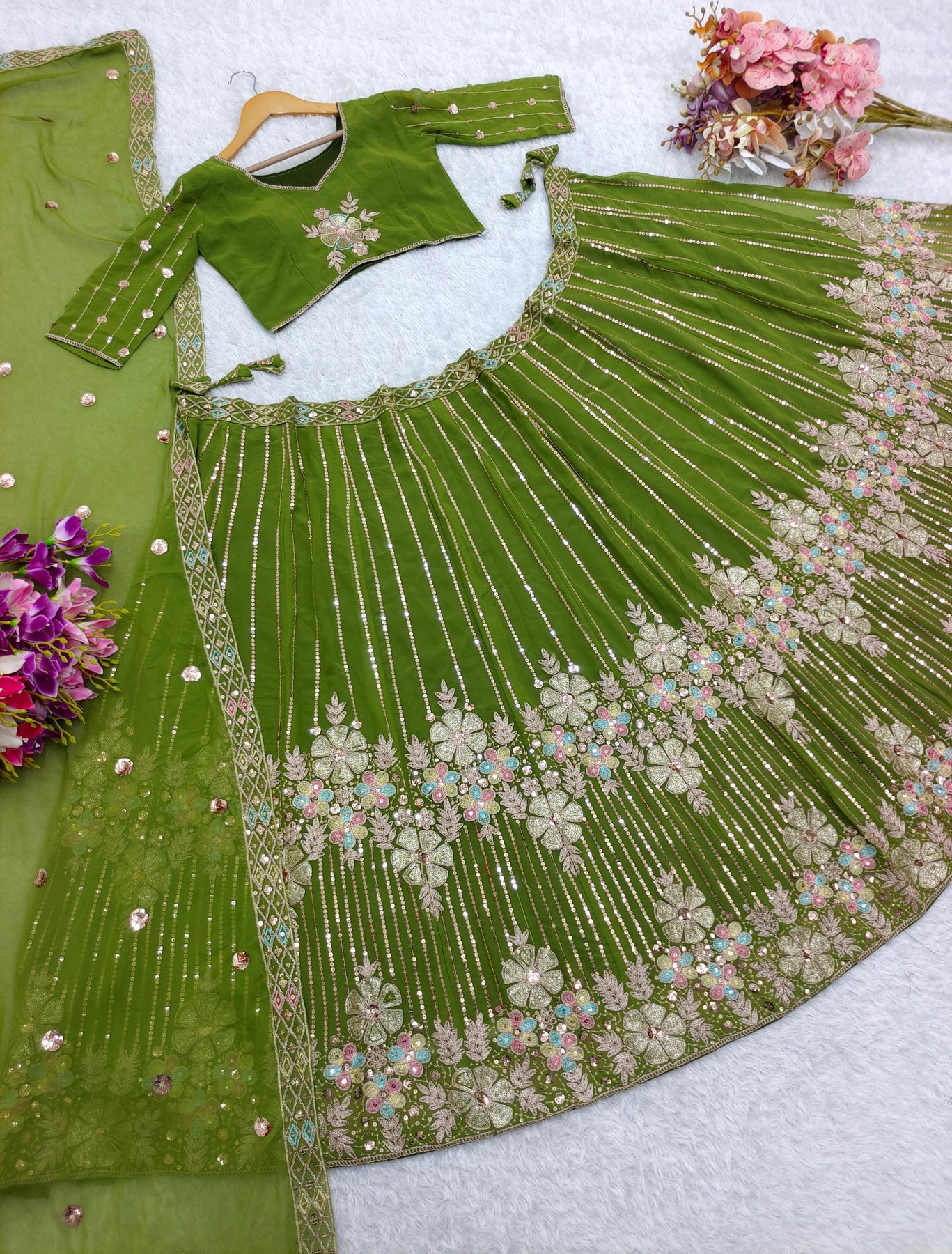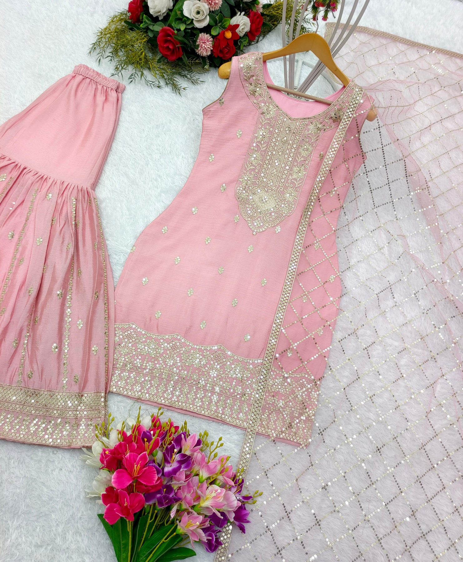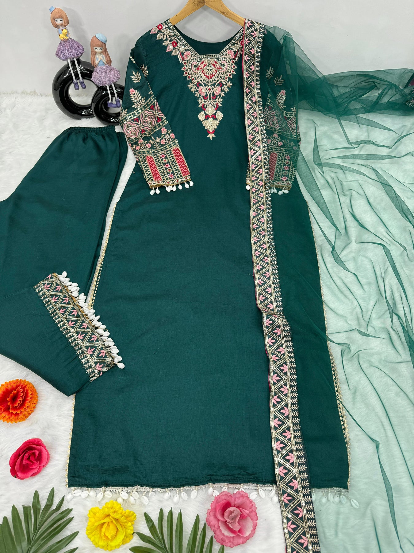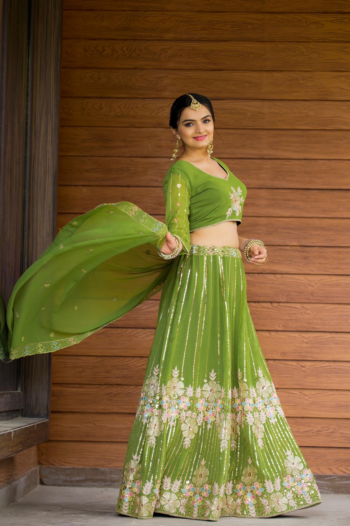Marvelous Green Color Embroidery 5mm Sequence Work Sharara Suit