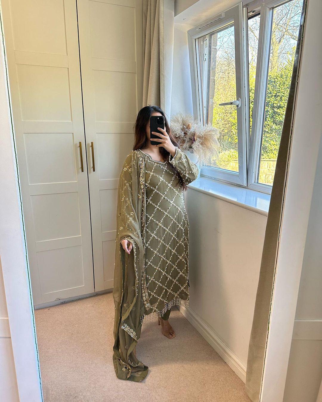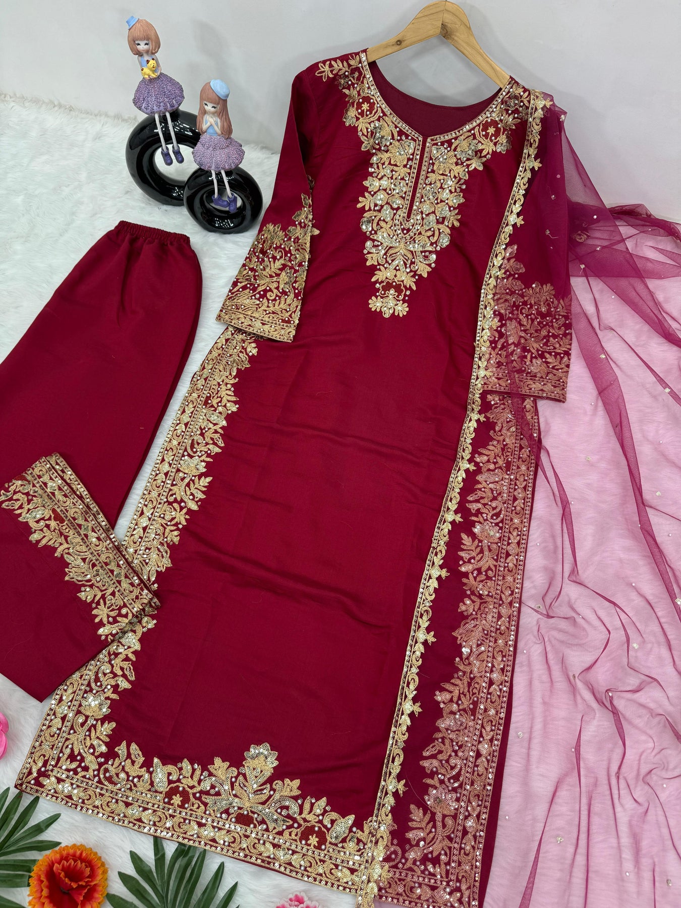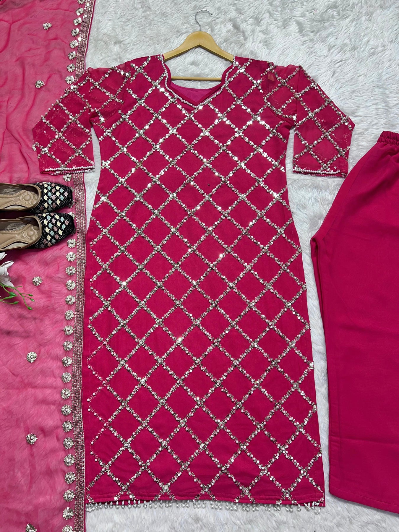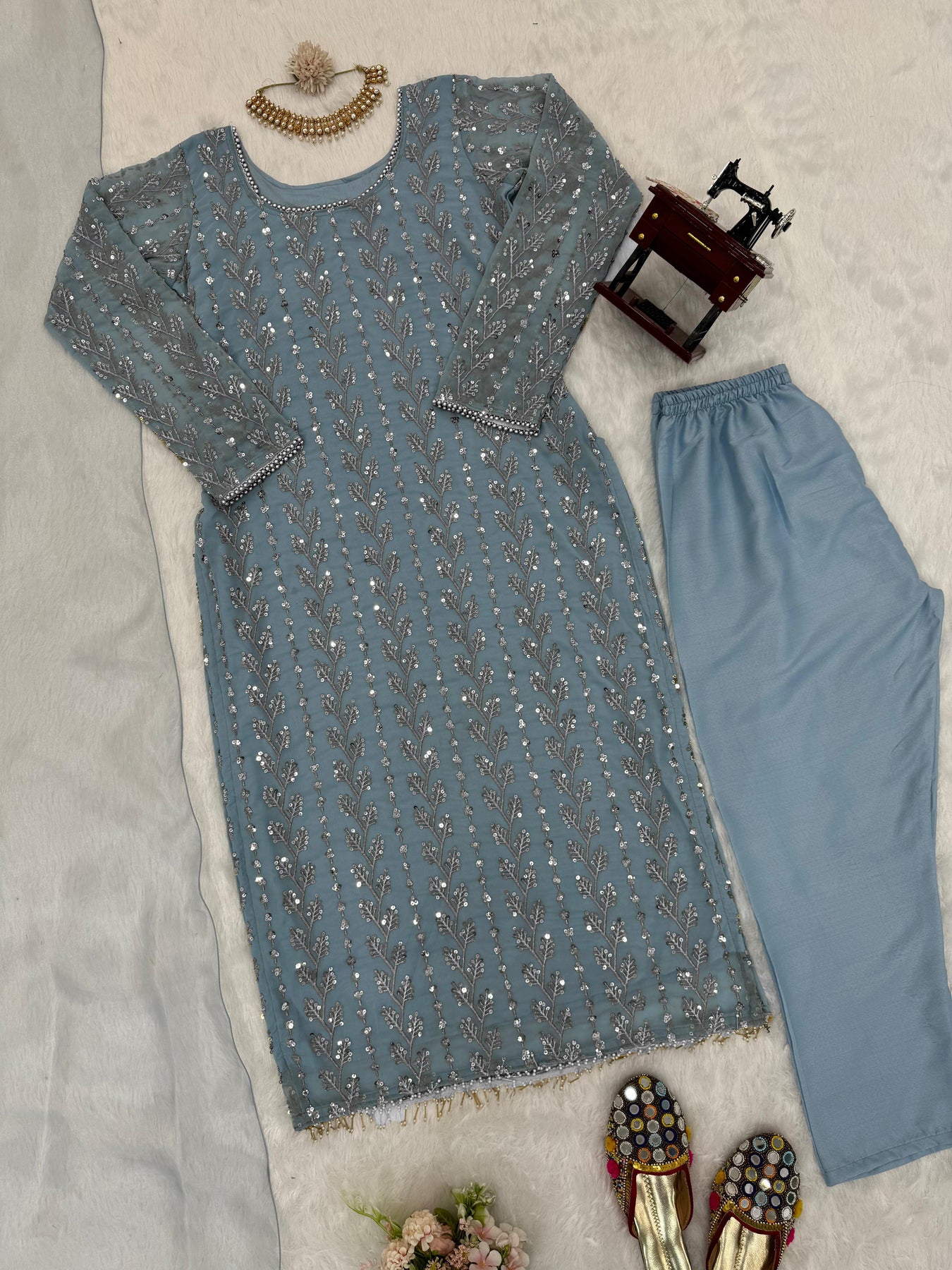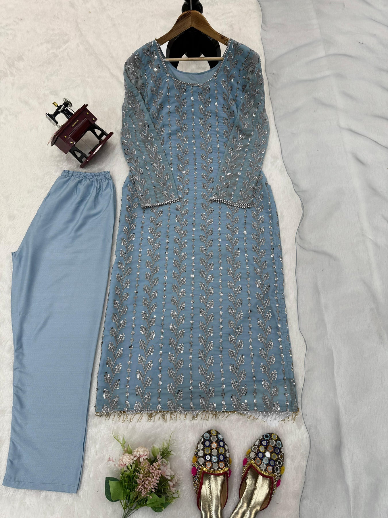 | Work | Heavy Embroidery 5mm Sequence Work With (Srot Sleeve Extra Fabric) |